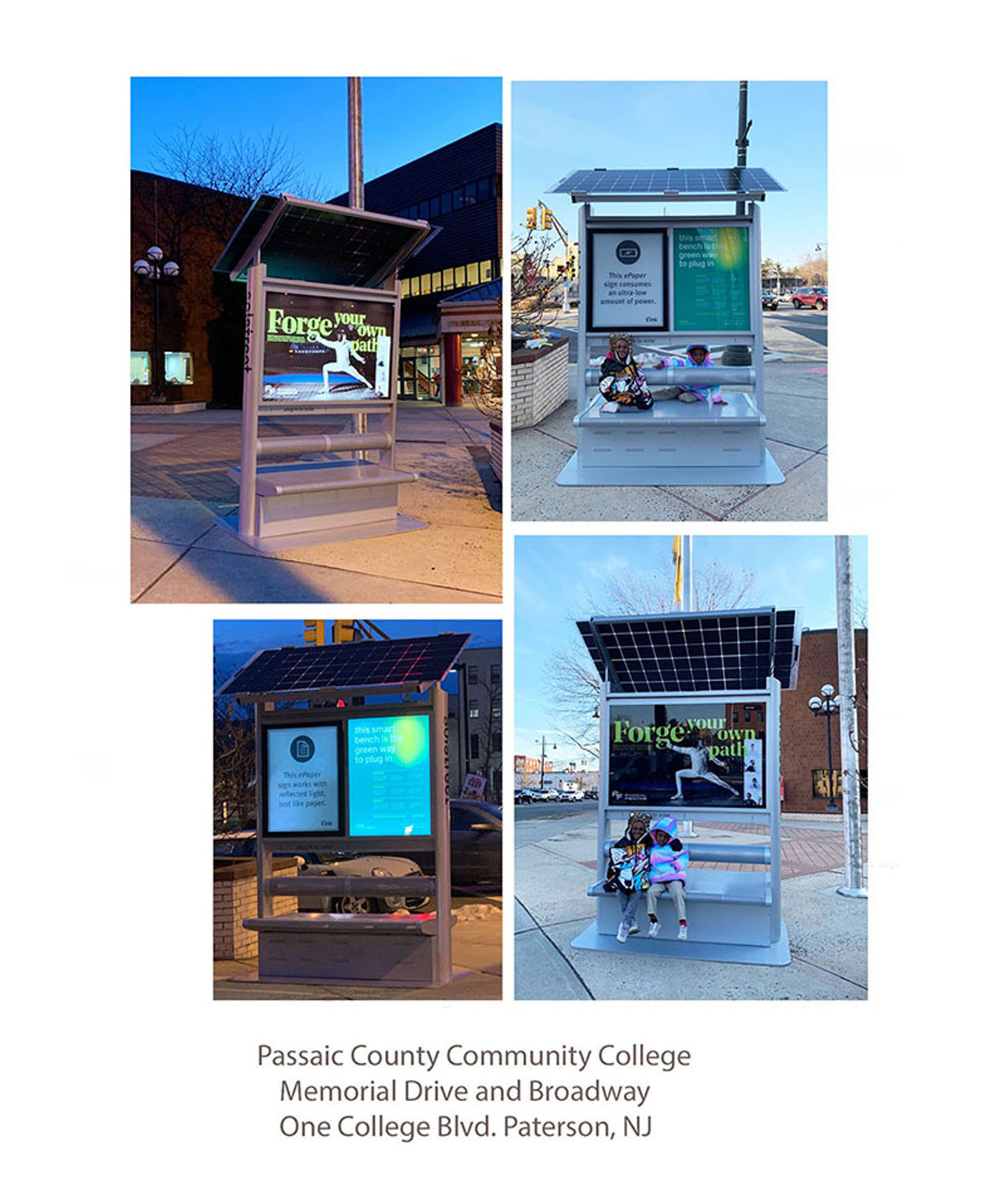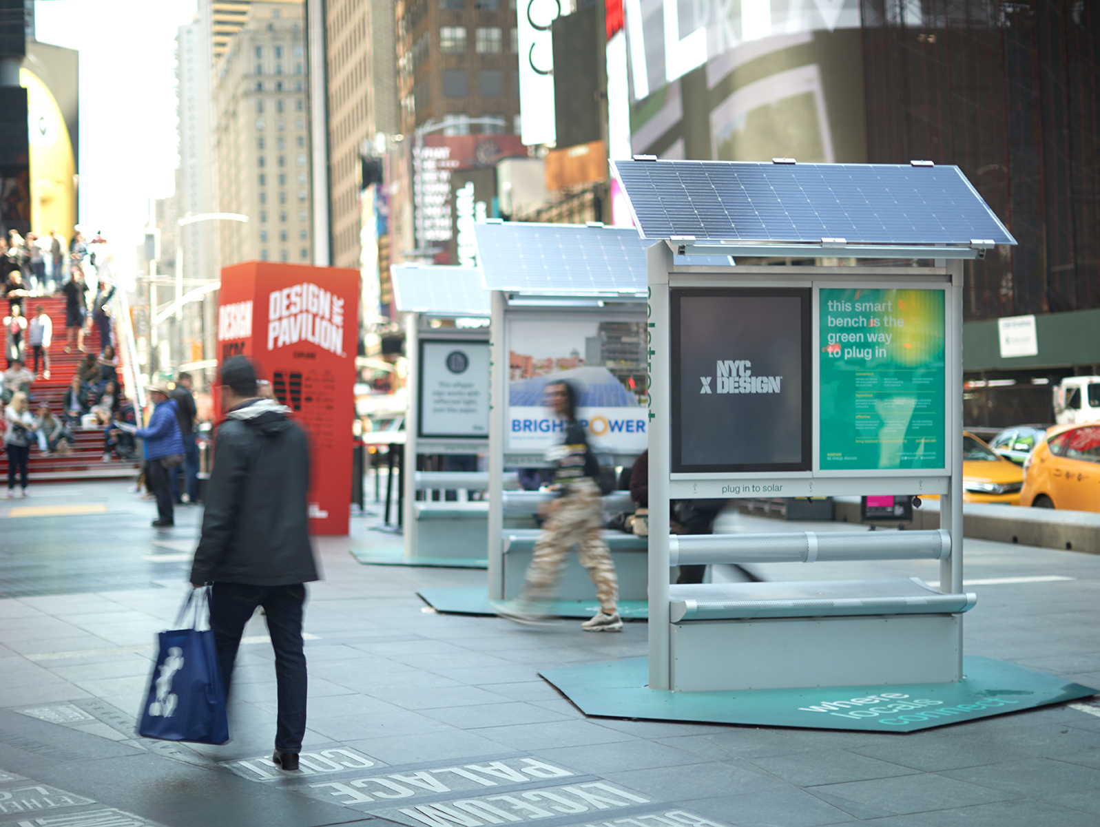 Visitors & neighbors stop by the solstreet bench to recharge while being updated on what's going on locally.